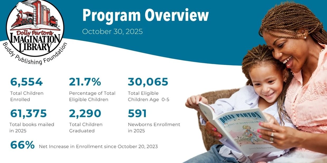 The Imagination Library of Aurora is funded through the generosity of local community partners, donors, and organizations who believe in the power of early literacy. Each local affiliate is responsible for raising the funds needed to provide free, high-quality books to children in their area. In Aurora, the program is proudly sponsored by the Buddy Publishing Foundation, which helps ensure every enrolled child continues to receive a new book each month. The annual cost to support one child’s participation is just $31, covering the selection, shipping, and delivery of 12 age-appropriate books each year — all at no cost to families.